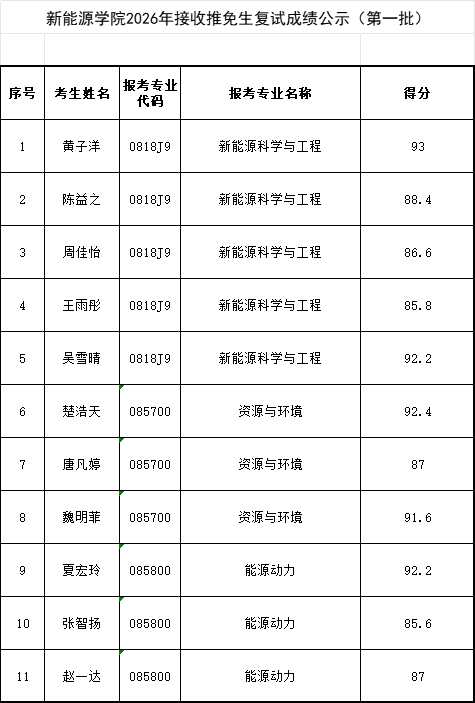伟德国际1946bv官网2026年接收推免生复试成绩公示(第一批)